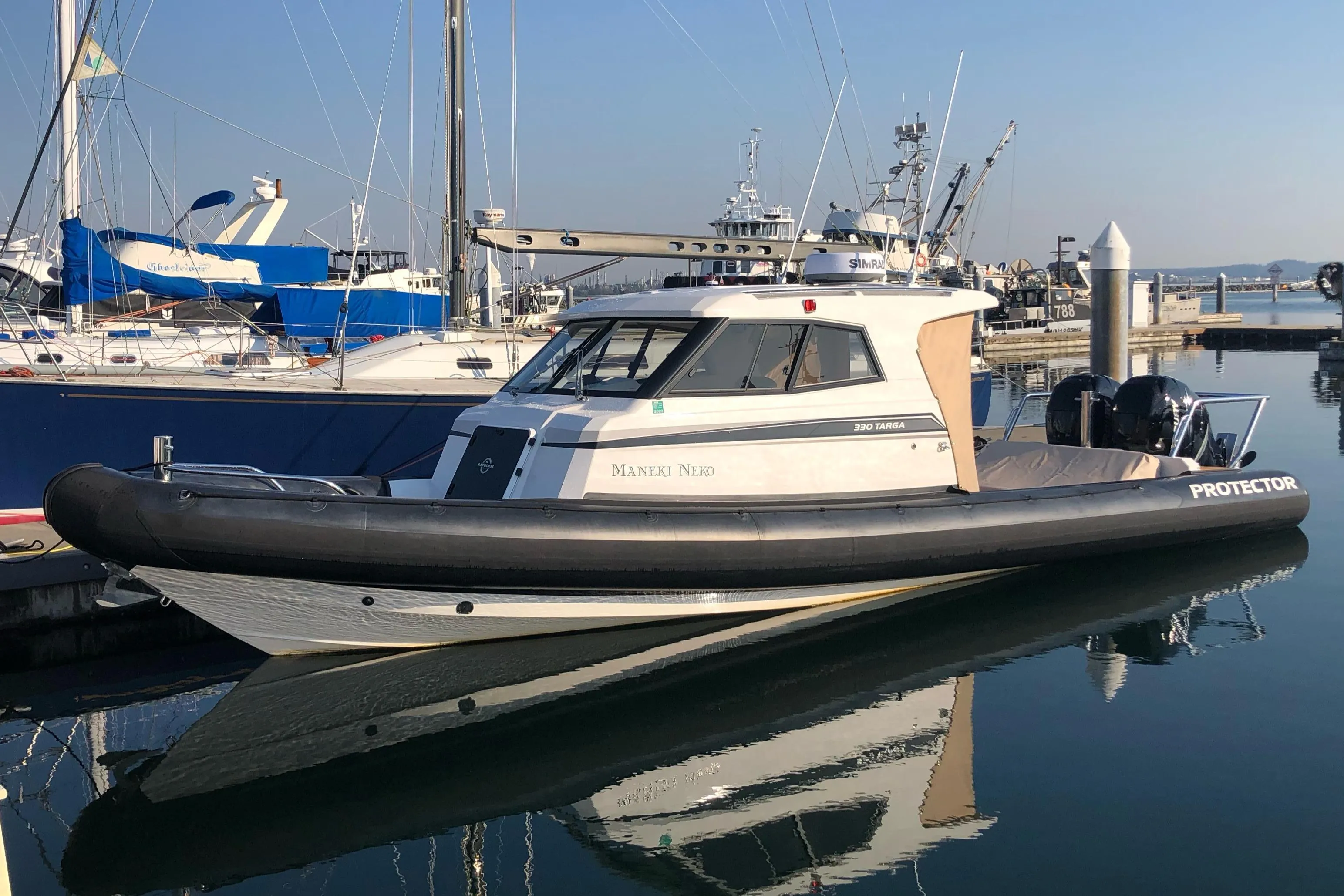 This current model Protector was one of four new 330s to arrive in the US post America's Cup boat production that year. Delivered new to the current owner in November 2021. Spent its 1st year in all fresh water on Lake WA, and past two seasons in the San Juan Islands.