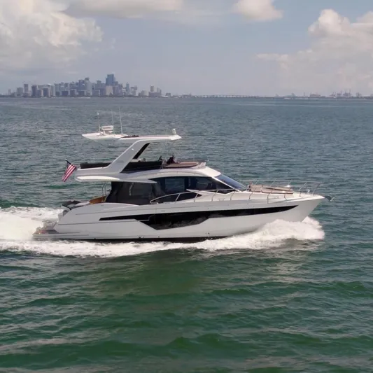 The award-winning Galeon 500 Fly is the most innovative yacht in its class. With all the luxury and craftmanship that Galeon is known for, the 500 Fly offers ingeniously unique features that make it an incredible investment in your boating lifestyle. With it’s unique “beach mode”, the cockpit width extends to a stunning 20 feet by dropping down both the port and starboard coaming sides.