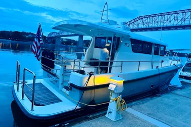 This boat is equipped with Twin Volvo Penta D4-225DPH Motors with joystick docking system!