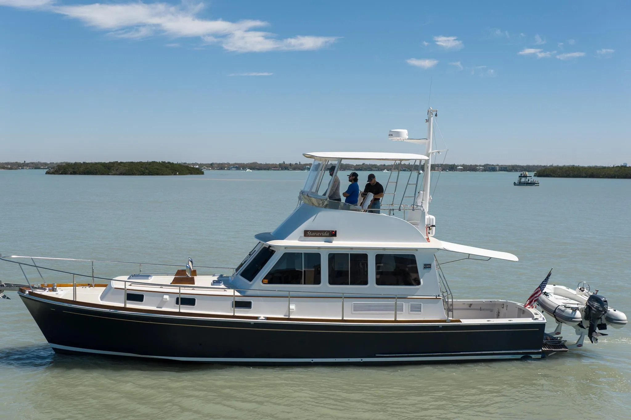 This 2000 Grand Banks Eastbay is a bristol example of an iconic design. The owner meticulously updated the boat when not cruising the Florida west coast, Keys and Bahamas. The Eastbay design is still in production with Grand Banks today. "Maravida" has been updated to modern comforts and technologies to create a perfect platform for your next adventure. She boasts updated Garmin electronics, comfortable top-of-the-line Nautical Design helm seats, a Freedom Lift for the dinghy off the transom, a brand new Banded Stamoid Top, new topside paint, and a brand new stereo system including a Fusion stereo and JL Audio speakers. The gorgeous interior reminds you of the famous Grand Banks design, but with modern upgrades. There has been no expense spared in the updates for this vessel!