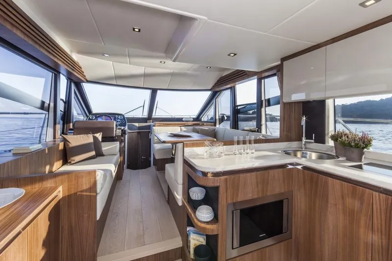 Introducing the 2015 Absolute 45 FLY, a stunning flybridge yacht that combines elegance with performance. With an overall length of approx 14 meters, this vessel is crafted from durable fiberglass, ensuring both strength and style on the water. Powered by twin VOLVO PENTA D6-435 inboard engines, each delivering 435 hp, it promises exhilarating cruising speeds of up to 24 knots and a maximum hull speed of 30 knots, making it perfect for adventurous outings. The yacht features a sophisticated joystick control for effortless maneuvering, enhancing the overall boating experience. Accommodations include two well-appointed cabins and two heads, providing comfort for guests. The design prioritizes both functionality and luxury, making it an ideal choice for those seeking a remarkable maritime journey. Experience the perfect blend of performance and comfort with the Absolute 45 FLY, a true gem in the world of yachting.