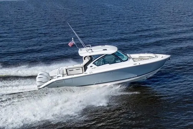 The DC 326 builds on the reputation of one of their most popular boats, the DC 325. The DC 326 features a fully integrated fiberglass hardtop with tempered glass windshield, thoughtfully designed storage and starboard hull side door - all with the distinctive aesthetic of Pursuit’s Dual Console series. A port side wrap-around lounge, rotating helm seat, forward bow and foldaway cockpit seating offer plenty of room for friends, family and crew while rod holders, recirculating livewell and dedicated tackle storage are ready to fish.