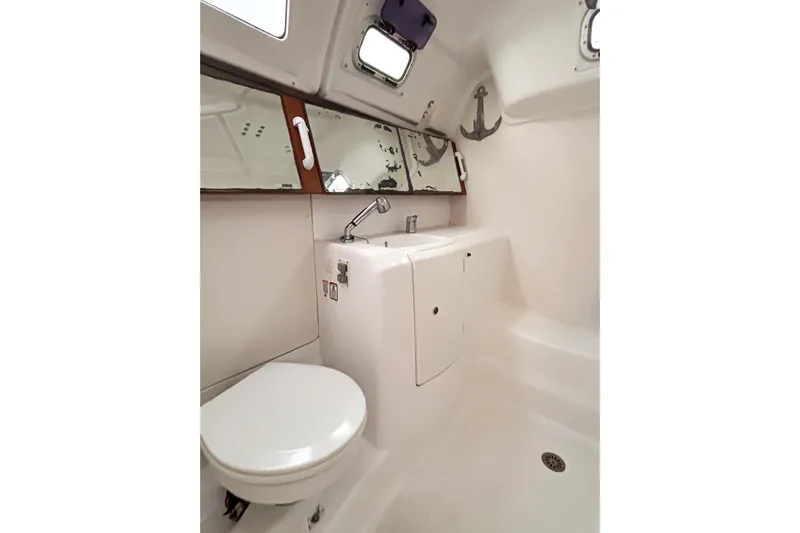 Her draft of 4’8’’ allows access to most desirable anchorages on the U.S. East Coast and the islands, and her owners cruise in comfort with rich mahogany and leather accents throughout her 2-stateroom interior.