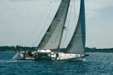MATCHLESS - designed in 1982 by Ron Holland and built by Chantier Naval de l’Anitra, combines strong sailing performance with the most classic and comfortable interiors by John Munford. Her teak deck, sails and all onboard systems — electrical, electronic, hydraulic, hydrodynamic and sanitary — are new, as are the sofas, mattresses and upholstery.