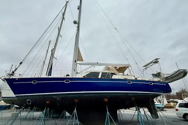 Fully equipped for serious blue-water cruising, this yacht includes a genset, watermaker, air conditioning, davits, in-mast roller furling, solar panels, and more—ready for self-sufficient adventures.