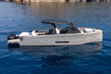 The Max43 Race is a cutting-edge 43-foot walkaround that combines high performance with elegant design and premium comfort. Built with a stepped hull (V2, 21º) and powered by twin up to 400 hp outboards, this yacht delivers exhilarating speeds of over 40 knots while maintaining impressive efficiency and stability.