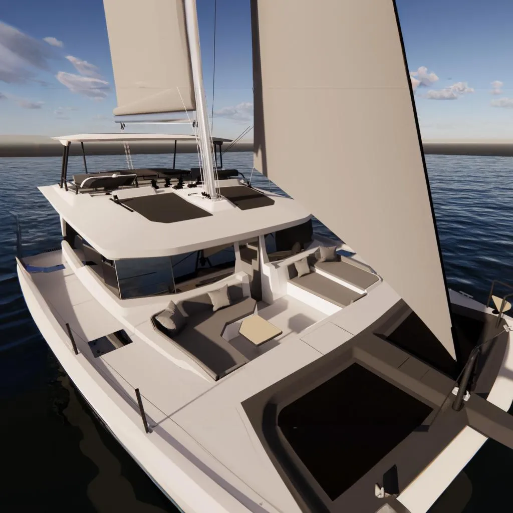 Also available with fixed position aft-deck extension - for tender placement or enhanced cockpit entertaining space
