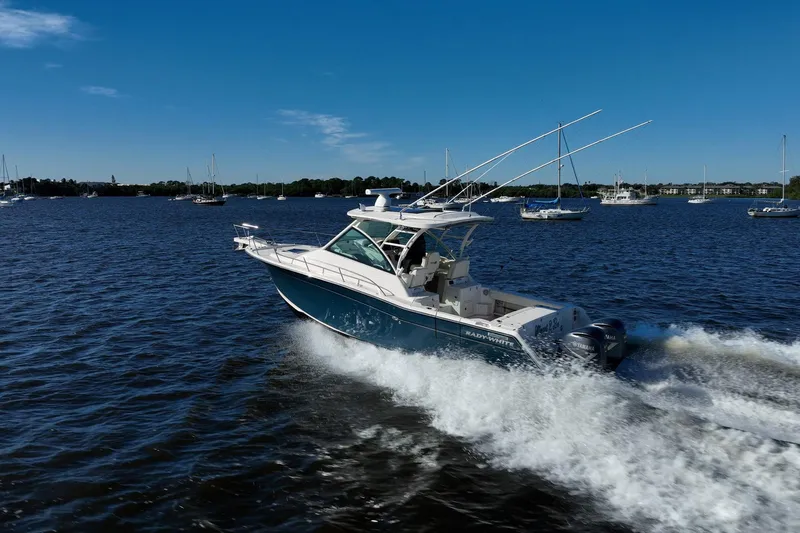 "Meant To Be" is a 2018 Grady White 330 Express Loaded with options and features. Named one of the 25 all-time greatest offshore saltwater fishing boats, Grady’s Express 330 delivers on comfortable seating, an abundance of features, a luxurious cabin, and exceptional overall performance. This 33-foot fishing express cabin boat is also great for cruising with family and friends or enjoying a weekend away. Amenities such as a stainless steel refrigerator and a galley with sink and stove add to the comforts this cabin boat offers as standard. And of course, like all other Gradys, this amazing boat comes standard with the top-performing, Grady-White exclusive SeaV²® hull.