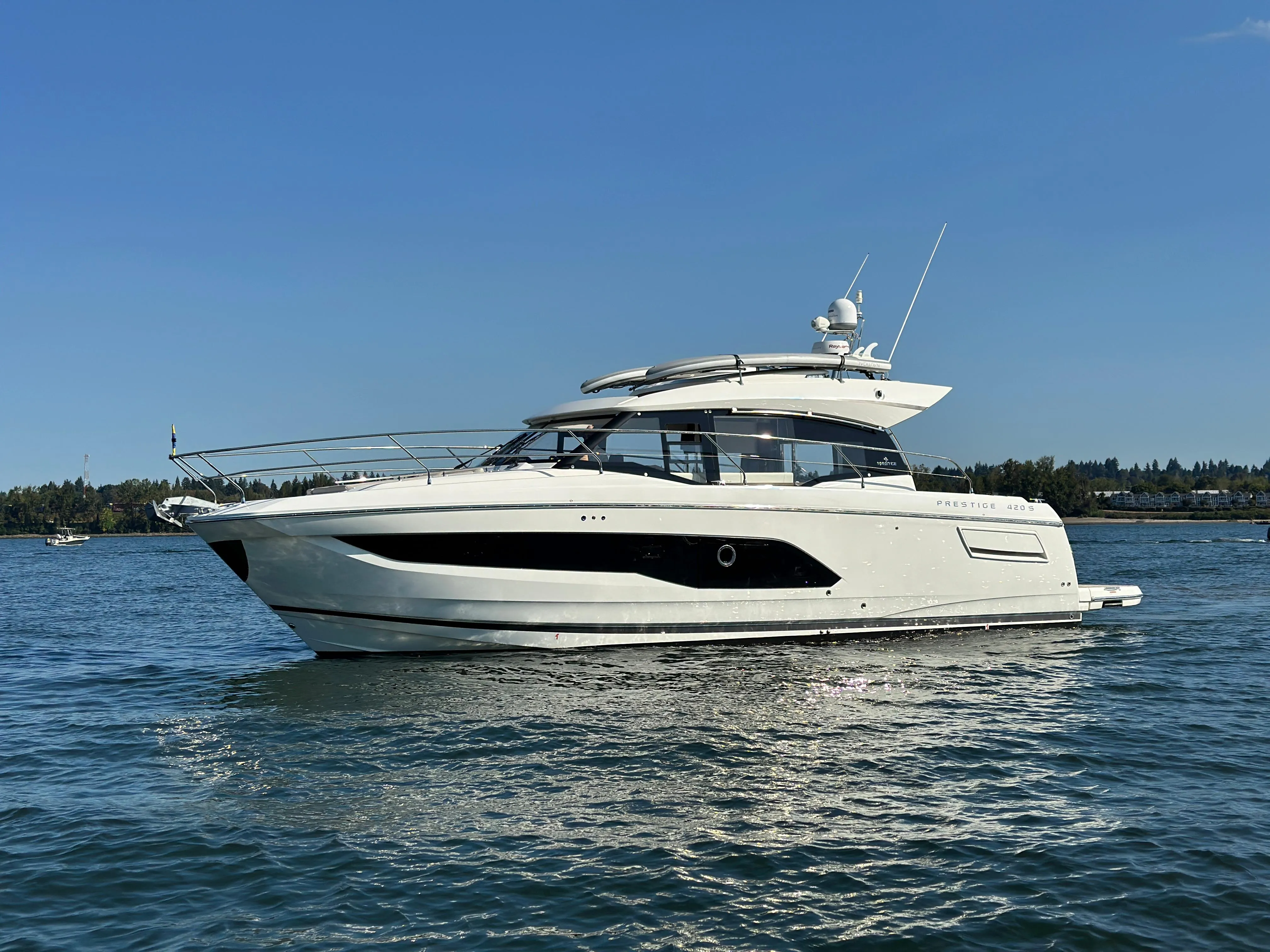 This vessel is in phenomenal shape, has been a river boat for it's entire life, boat house kept for the last year, and absolutely loaded with options. You will not find a cleaner Prestige 420 S anywhere in the country. SELLERS OFFERING TO ALLOW THE BOAT TO STAY IN IT'S COLUMBIA RIVER BOAT HOUSE THROUGH MAY 2024! Make an appointment to see it today!