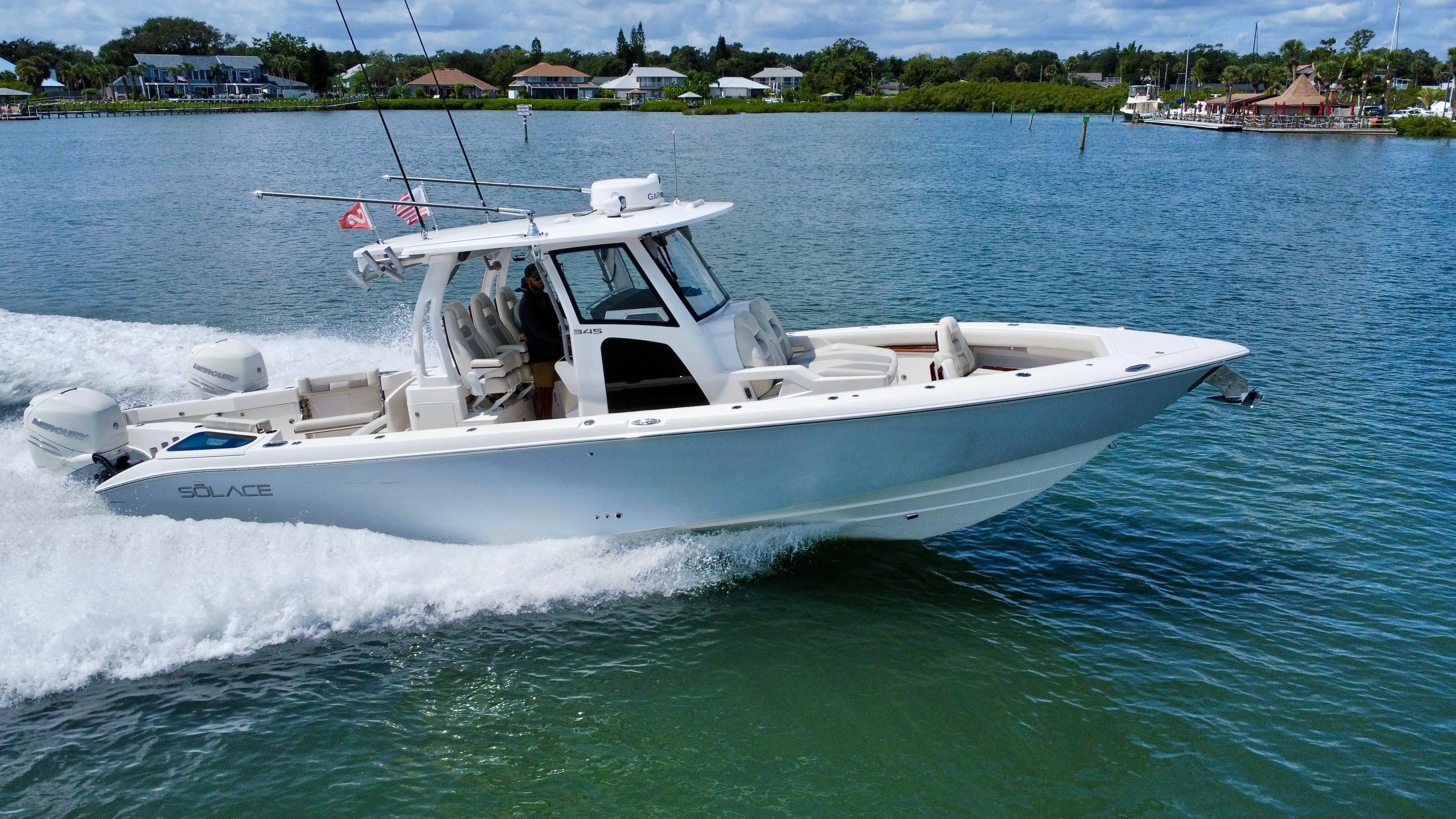 Experience the perfect blend of luxury and performance with the 2020 Solace 345 CC. This 34-foot center console boasts cutting-edge design, exceptional handling, and a powerful twin-engine setup, making it ideal for both exhilarating offshore adventures and relaxed coastal cruising. Its spacious deck features ample seating, a well-appointed helm, and high-quality finishes throughout, ensuring comfort and style on every voyage. With top-of-the-line electronics, large livewells, and ample storage, the Solace 345 CC is designed for the serious angler and the discerning boater alike. Don’t miss the opportunity to own a vessel that delivers unmatched performance and elegance.