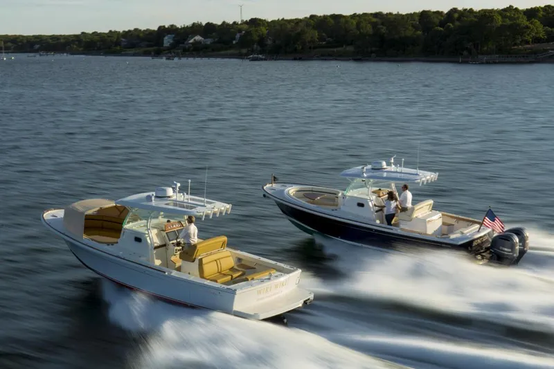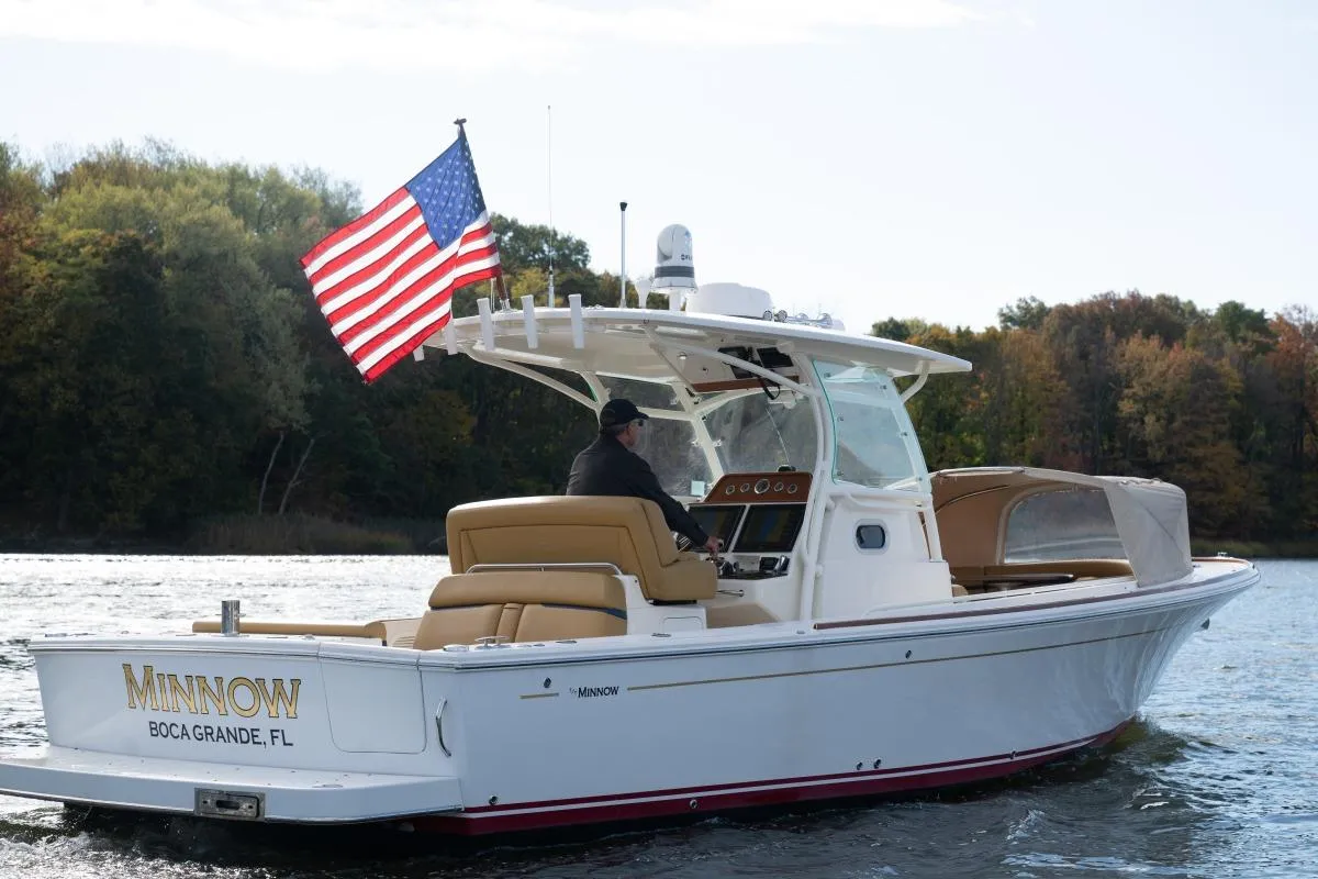 Minnow is a 2016 Hunt Yachts 32 CC available for immediate delivery. She is exceptionally clean and looks and shows like a new boat. Single inboard Yanmar 370 with 450 hours and a 2025 outdrive. She is outfitted for fishing or cruising, making this the perfect boat for a day on water. In addition, Minnow also has a Side Power bow thruster, with joystick control at the helm.
