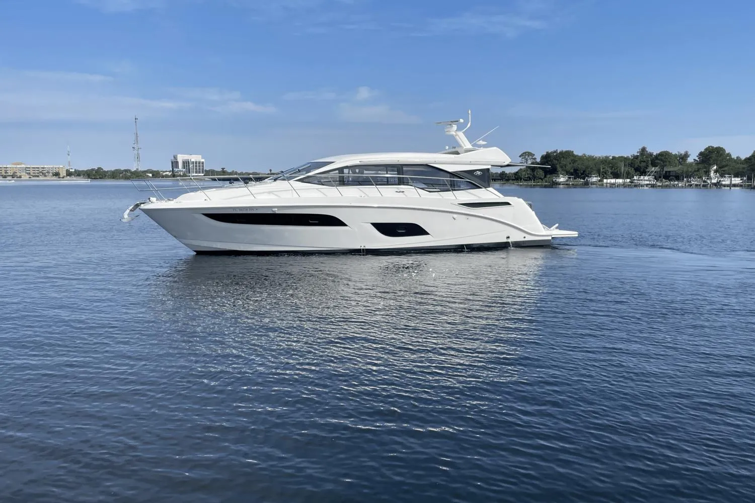 Experience luxury on the water with the stunning 2018 Sea Ray 460 SunDancer. With twin Cummins QSB 6.7 Diesel engines and Shaft drive, this beauty offers power and performance. Boasting only 519 hours and recent maintenance including fresh bottom paint, she is ready for her next adventure. Equipped with an extended hydraulic swim platform, joystick, and bow thruster, this vessel provides unmatched maneuverability. The salon features a large retractable moon roof for an open-air feel. Docking is effortless with the aft control joystick in the cockpit. Stay connected with cutting-edge electronics including twin Raymarine monitors, GPS, map plotters, sounders, Open Array Radar, auto-pilot, VHF, and premium stereo system. Entertain guests with comfortable seating, a Sure Shade for sun protection, Teak cockpit and a grill for onboard culinary delights. Enjoy ultimate luxury at sea with the Sea Ray 460 SunDancer.