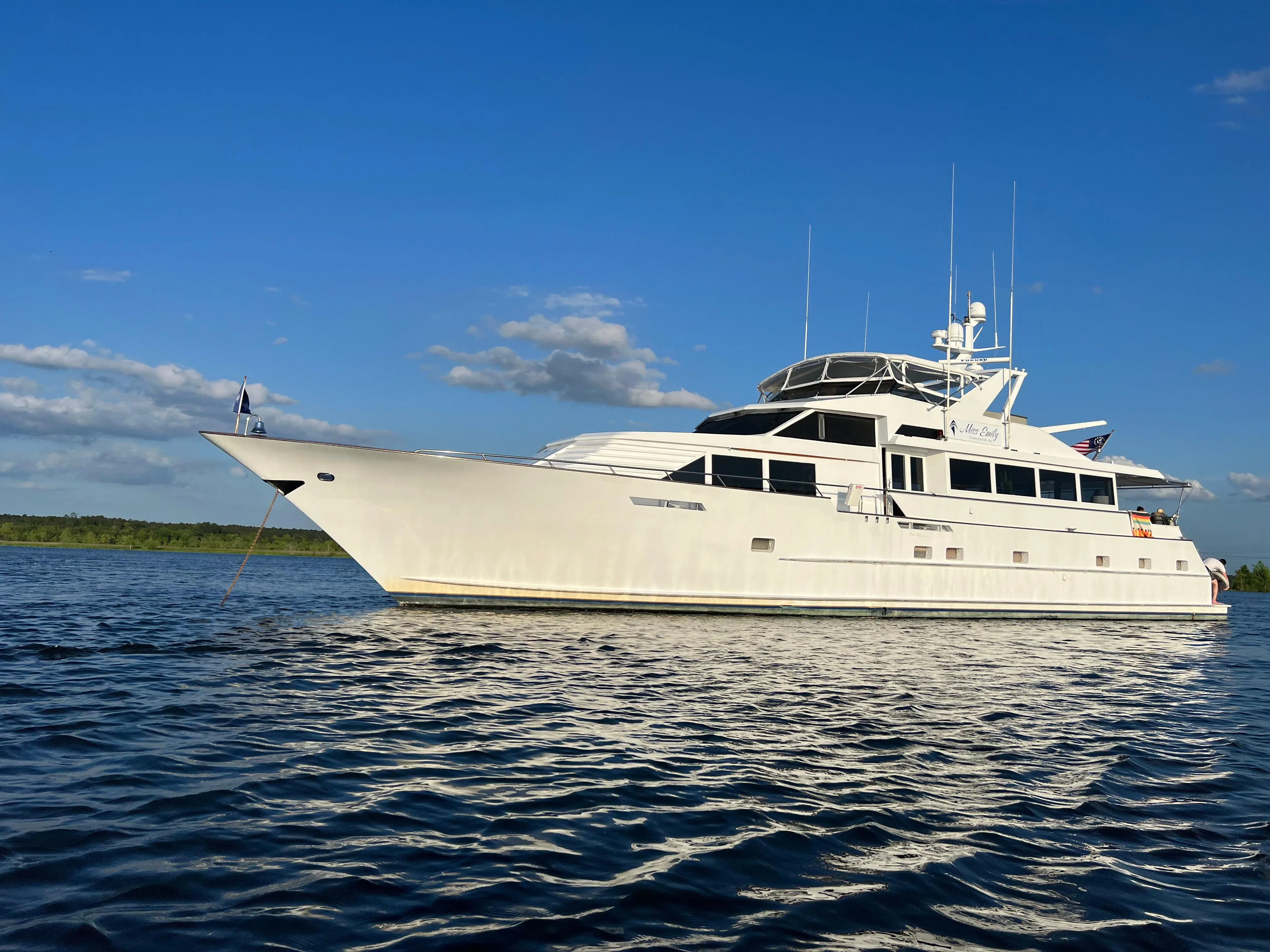 The owners of MISS EMILY bought this beautiful Broward intending to launch a charter business that would offset some their cruising costs. After 3 years of hard work and, against all odds, they have successfully offsetting all of them. It didn't come easy (or cheap), as they first had to find and buy the nicest Broward with the most potential, and then invest several hundred thousand dollars to make sure that she was beautiful inside/out and always ready to go for the next charter...she doesn't disappoint!