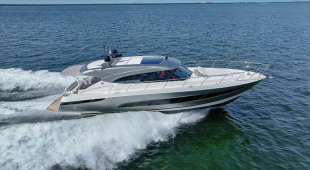 This 2023 Riviera 5400 Sport Yacht Platinum Edition Just Arrived in Tampa from Lake Pickwick, TN (freshwater under cover)