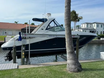 With the 350 Sundancer, oversized hull windows contribute to enhanced interior visibility and ambient light. There is a clever aft-facing transom seat, cockpit barbecue and refrigerator and an electrically adjustable forward berth. A plunging sheer line and contoured fiberglass sport spoiler are sure to grab attention wherever you go. She is the perfect blend of luxury and performance with this pristine 2011 Sea Ray 350 Sundancer, boasting one new engine and one with 540 hours and new manifolds and risers. This vessel is exceptionally well-maintained and loaded with premium features, making it a standout choice for discerning buyers.