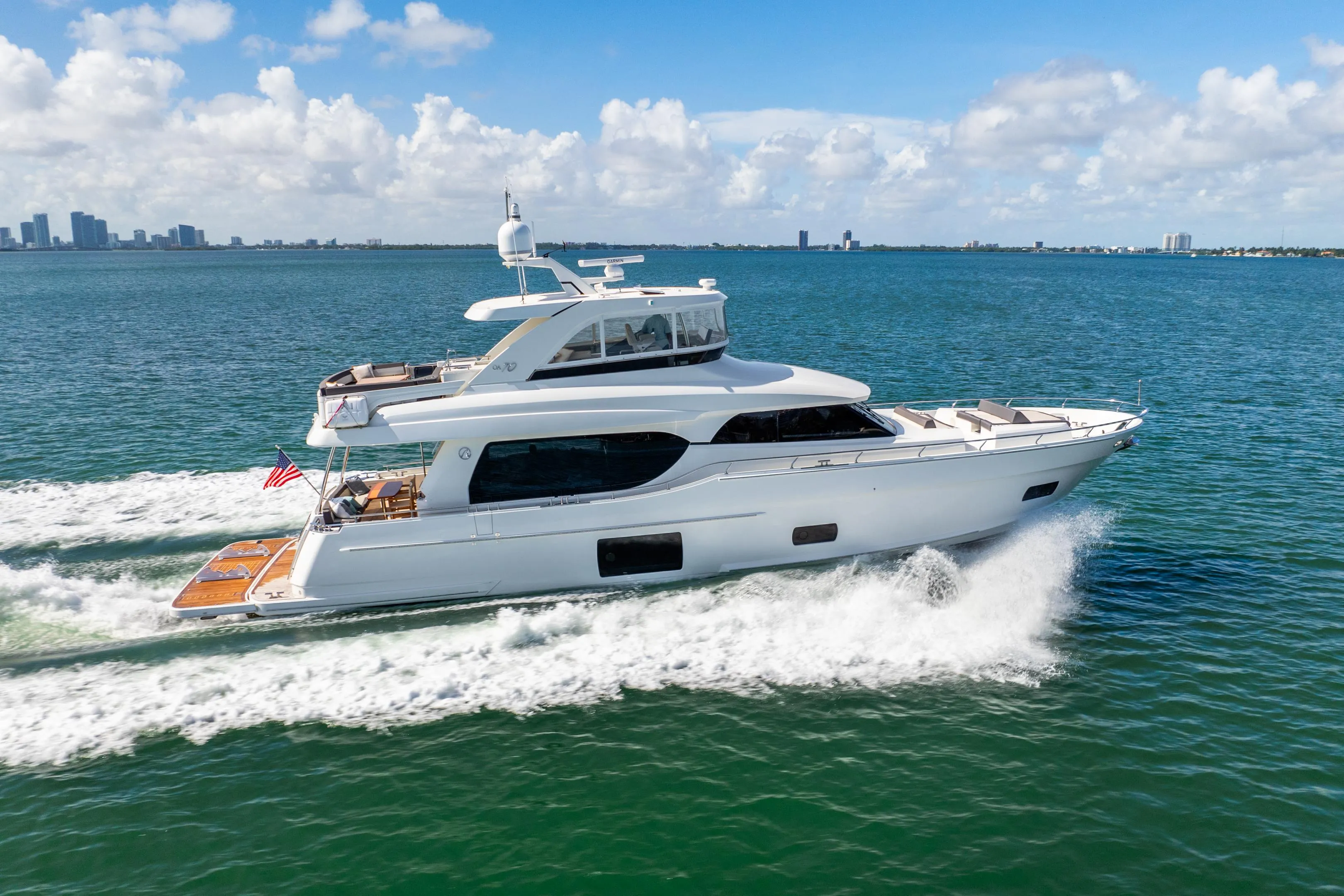 This pristine 2021 Ocean Alexander 70E "Mocean", is a perfect built for either a owner or crewed operated yacht. Located in Sunset Harbour, Miami Beach, she is the final of a successful series of 70E OA and showcases Ocean Alexander’s finest craftsmanship to date for a yacht of this size. Boasting the highly reliable and economical twin IPS 1350HP Volvo engine package with low hours Mocean is in absolute pristine condition. With a host of premium upgrades, she is a rare opportunity for a well appointed, especially well optioned and designed yacht ready for her next ownership.
