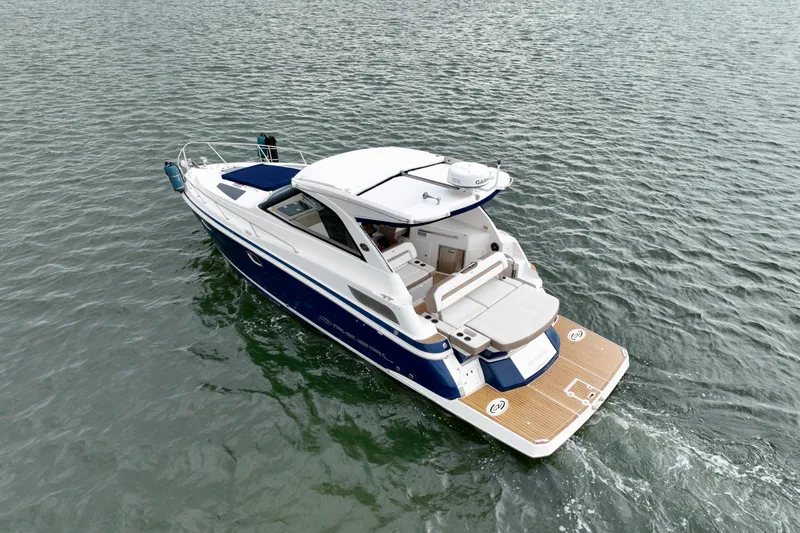 The spacious cockpit is designed for entertaining with wraparound seating, a wet bar, and a pop-down TV above the wet bar, creating a perfect social area for guests. Regal’s hardtop with sliding sunroof allows you to open the boat up for fresh air or close it down for fully enclosed cruising.