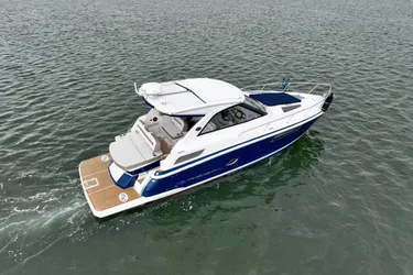 The Regal 35 Sport Coupe is one of Regal’s most sought-after express cruisers, offering the perfect balance of performance, luxury, and all-weather usability. Powered by twin Volvo Penta 300-hp V8 engines with joystick docking and showing only 360 original hours, this vessel delivers strong acceleration, efficient cruising, and effortless maneuverability in tight quarters.