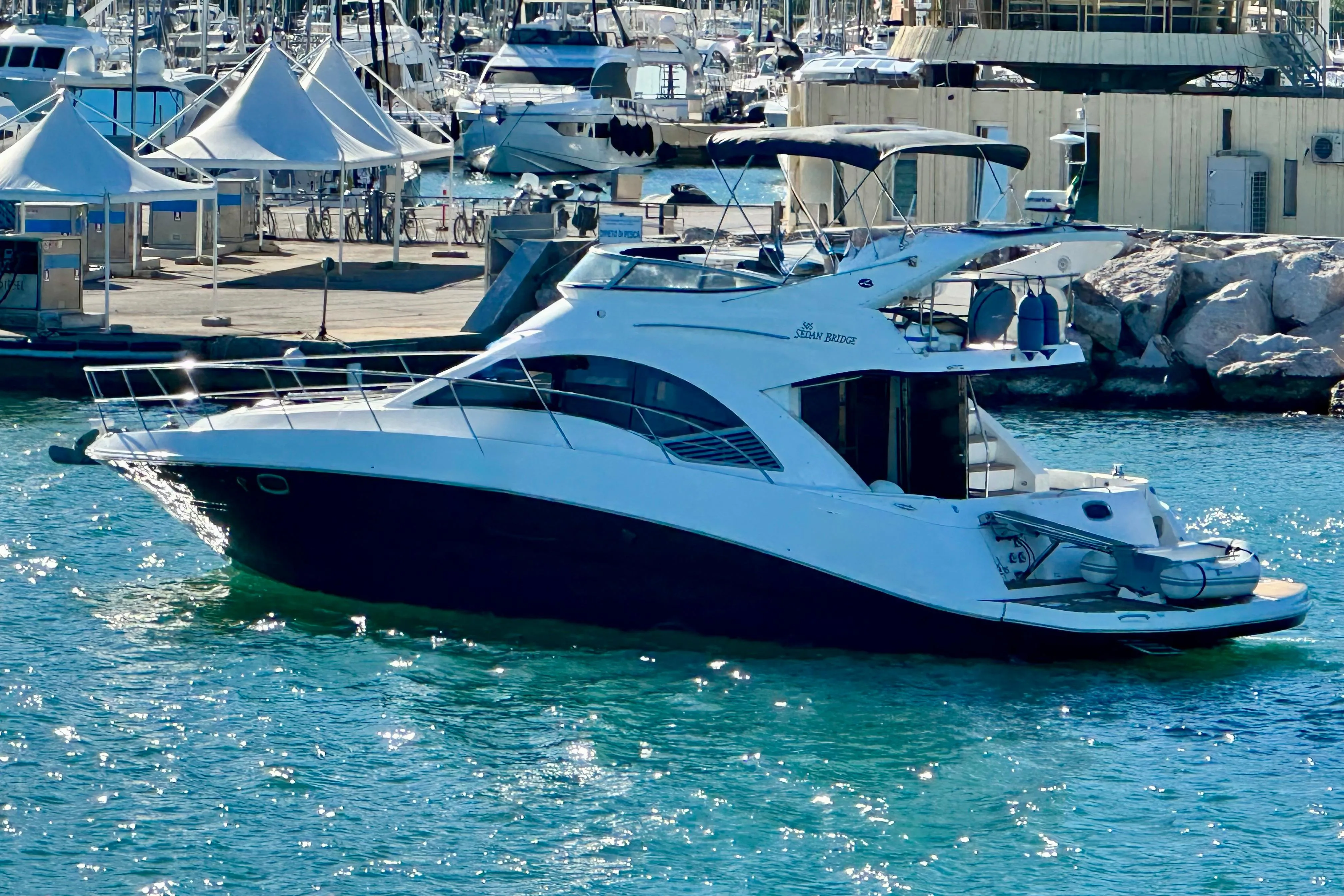 Imbarcazione americana dalle qualità costruttive eccezionali, rifiniture di pregio. Il Sea Ray 505 Sedan bridge è ultra accessoriato e pronto a navigare. Ha solo 330 ore di moto e si presenta in condizioni eccellenti. Tre cabine, 2 toilette, cabina marinaio da allestire a poppa.