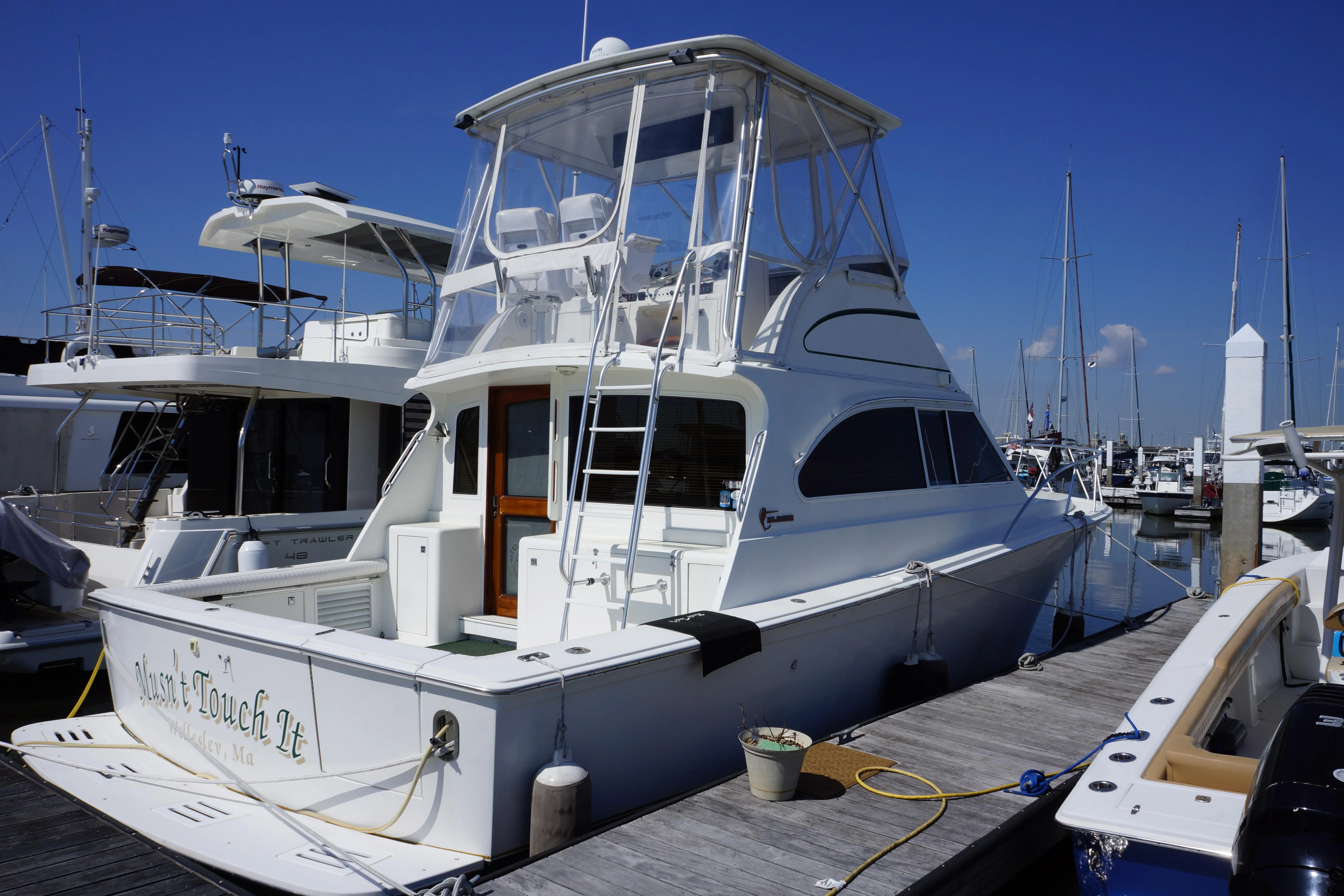 New Arrival. MUSN'T TOUCH IT is new on the market. This 1996 38' Egg Harbor Sportfish has been extremely well maintained and care for by a knowledgeable owner. It shows! Powered by New (2021) Twin C7 Cat diesel engines. Any captain would be proud to show this engine room. Low engine hours at 518 but regularly taken off the dock to cruise and travel. Recent Haul Out for Full Service and Bottom Paint. Westerbeke Generator. Clean exterior and interior. Full electronics, twin stateroom, dry head/shower midship, galley down with only a couple steps down from the salon. Ample salon and cockpit space. Twin Captain's Chairs, New canvas and a very clean roomy flybridge. Contact today for details and preview by appointment only.