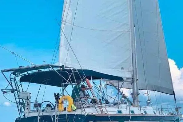~LOA: 49 ft 10 in, LWL: 44 ft 2 in, Beam: 14 ft 9 in, Draft: 6 ft 0 in, Weight: 28,660 lbs, Ballast: 9315 lbs, Hull Speed: 8.9 Knts~