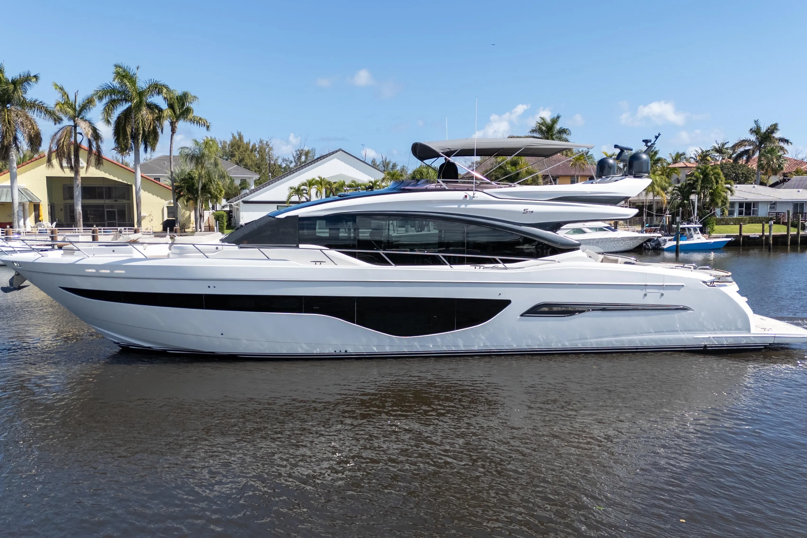 Distinctively cool whilst propelling you to an exhilarating 39 knots, the all-new S78 is the flagship of the Princess S Class. Her sportbridge inspires relaxation with a range of exclusive furnishings to choose from and seating areas that convert into sun loungers. Unique central access from her hydraulic bathing platform to the cockpit passes between twin sunpads whilst her foredeck features innovative seating with sunpads which can be converted to create additional aft facing seats. The perfect ambience is ensured across her sportbridge, saloon, cockpit and master cabin, where the world class NAIM Audio sound system comes installed as standard. Refined and captivating, she’s more than everything you would expect from the largest Princess S Class.