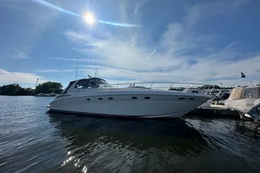 The Sea Ray 510 Sundancer features a raised helm design that's seaworthy, superbly luxurious, and impeccably appointed. This boat remains prepared to provide the utmost comfort in a variety of aquatic environments and conditions.