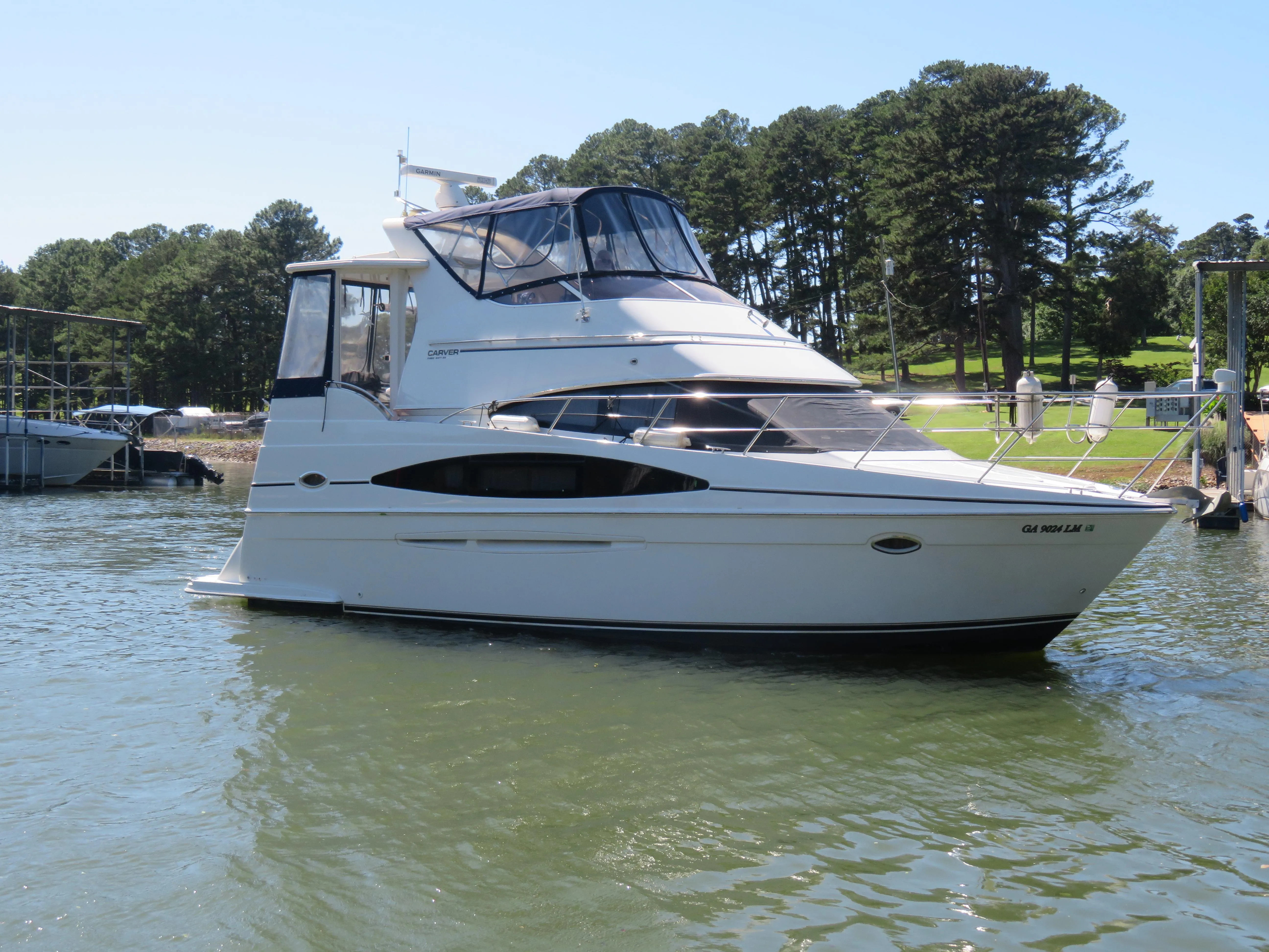 This is an immaculately kept Freshwater Undercover 366 with on 320 hours on Volvo 8.1 Inboards. It is equipped with Kohler 7 KW Generator with only 215 hours; 2 Stateroom 2 Head Layout with Vacuflush Head System; Aft Deck Hardtop with full Enclosures and Wing Doors; Upper Helm includes Updated Garmin Electronics including Radar, GPS & VHF Radio; Windlass; Air Conditioning & Heat; Bow Thruster; Aft Deck Icemaker; Recently Waxed and Ready to Enjoy today!!