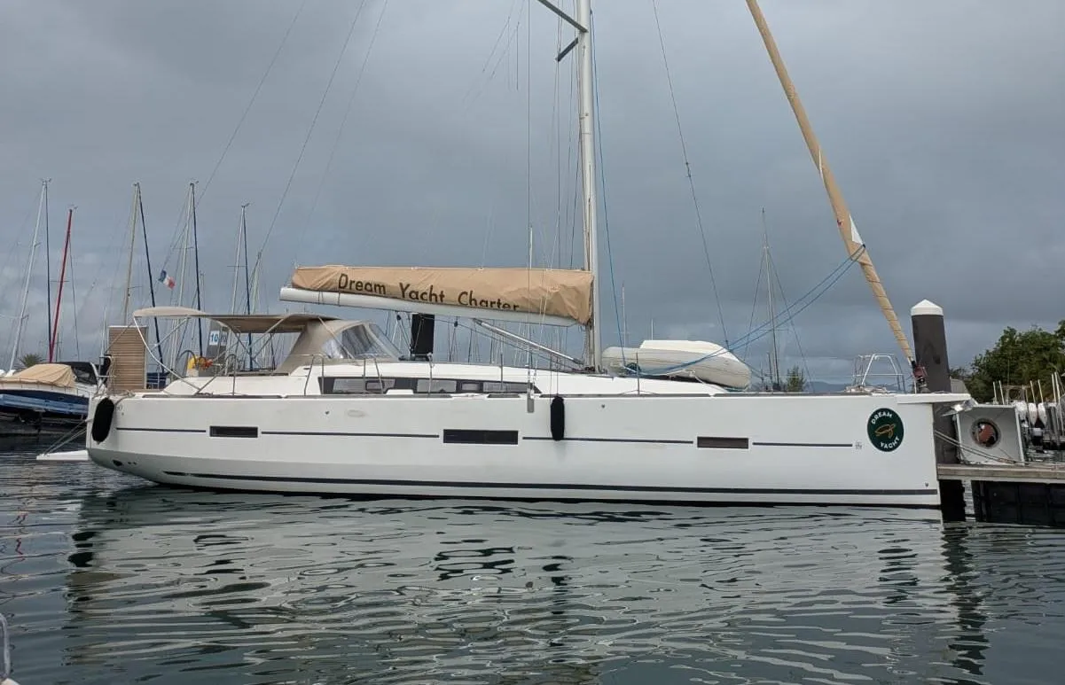 Dufour 460 GL for sale in Grenada. Introducing the Dufour 460 Grand Large, a remarkable 46.4-foot Racer/Cruiser that beautifully blends performance with comfort. Built in 2017, this used vessel features a sleek monohull design crafted from durable fiberglass, ensuring both speed and stability on the water. Powered by a robust 75 hp Volvo Penta D2-75F diesel engine with approx. 3010 hours, it promises reliable performance for both racing and leisurely cruising. The spacious interior accommodates four cabins and four heads, making it ideal for family adventures or entertaining guests, with a generous seating capacity for up to ten people. The Dufour 460 Grand Large is equipped with thoughtful features that enhance the sailing experience, making it a perfect choice for those seeking both adventure and relaxation on the open sea.