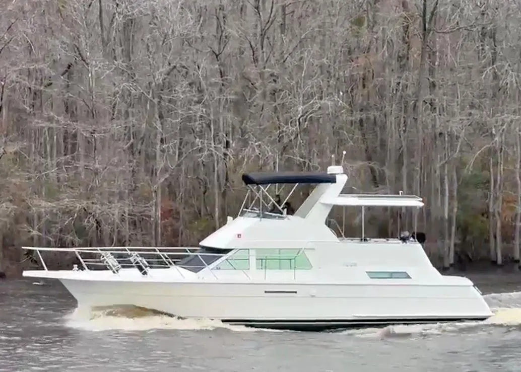 This model 42' Hatteras is an aft cockpit motor yacht configuration sitting on top of the famous Hatteras 42' Sportfish hull.