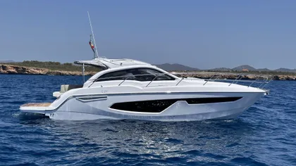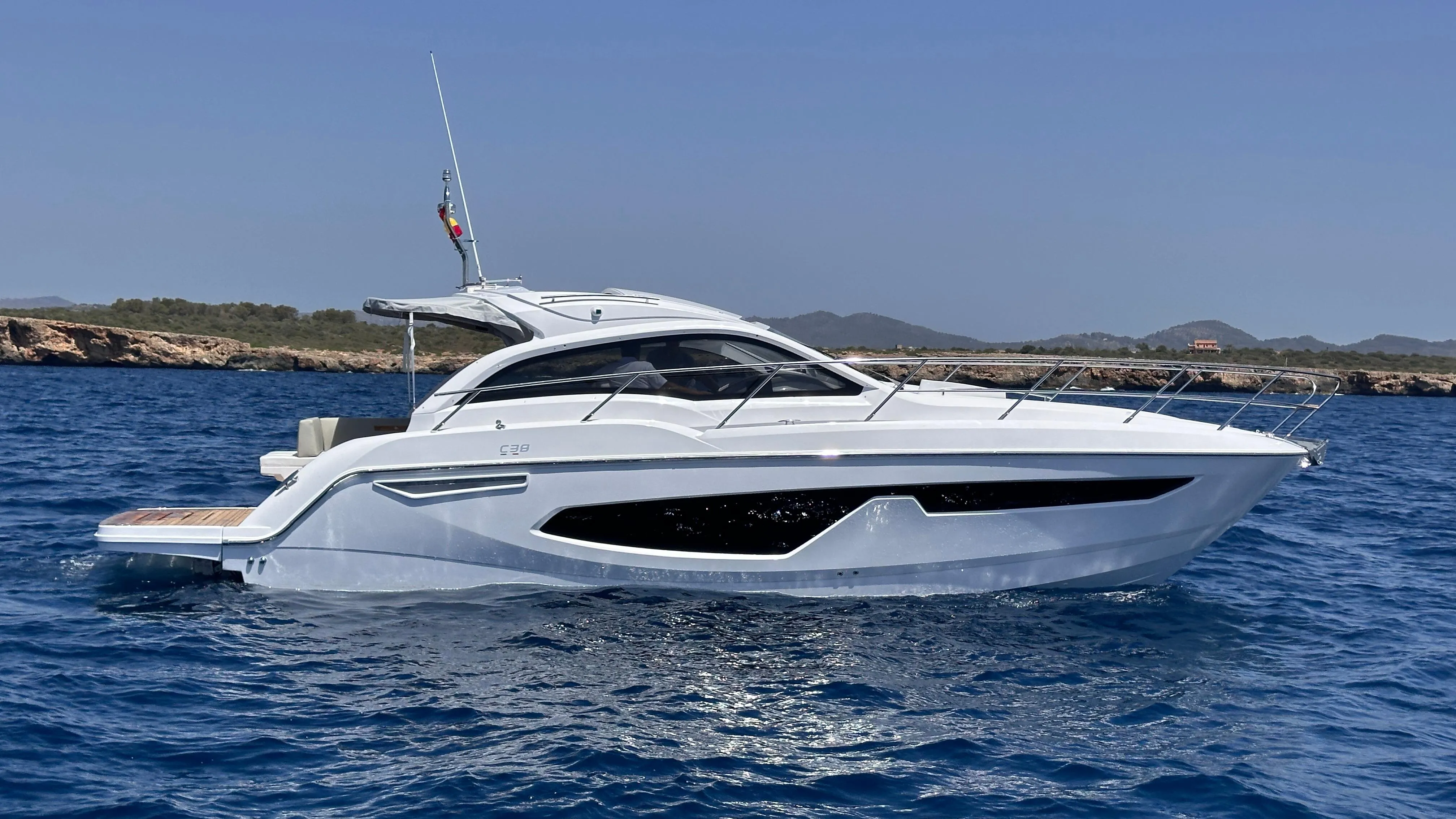 Yacht C38 range Cruiser Line. C38, already winner of boat of the year, is an icon of style and comfort. The light seeping in through its large windows, much like a veranda, gives rise to the feeling of becoming one with the sea. Below deck the optimization of space makes it truly livable, with two double cabins and a bathroom of impressive dimensions for its category. The two kitchens—one inside and the other situated on the cockpit the sunning areas, the chaise longue and the large couches allow for those aboard to feel at home