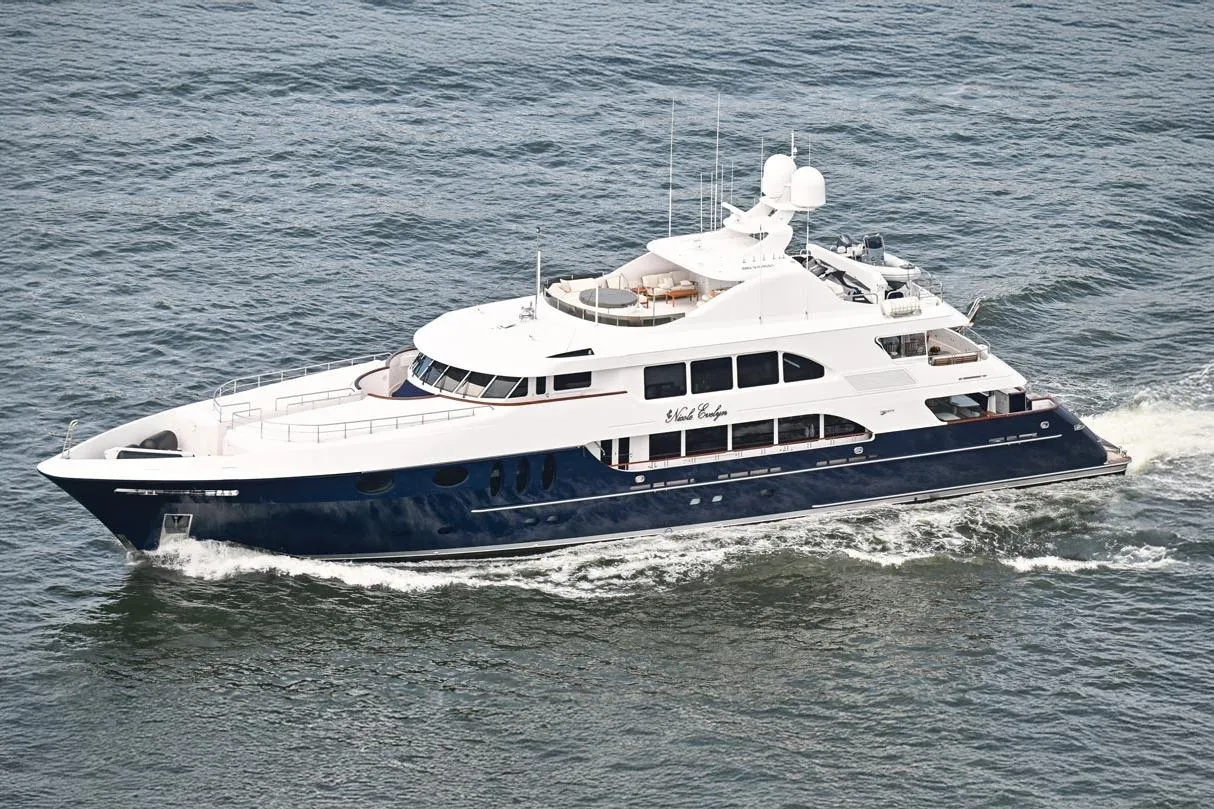 Presenting NICOLE EVELYN, a luxurious yacht showcasing a modern and elegant interior with a warm, welcoming ambiance. Designed by Trinity Yachts with an updated interior, she accommodates 11 guests in five sophisticated staterooms. The full-beam on-deck master stateroom offers tranquil views, his-hers en-suite bath, and luxurious amenities. Below deck, three king staterooms and a twin stateroom with en-suite baths provide comfort for guests. Outdoor features include an outdoor bar, spacious sun pads, and an impressive sun deck for alfresco dining. Built to MCA and ABS standards, she cruises at 14 knots, reaches a maximum speed of 19 knots, and has a range of 2,600nm with twin Caterpillar diesel engines and new Caterpillar generators. Equipped with updated zero-speed stabilizers, NICOLE EVELYN offers exceptional luxury on the water.