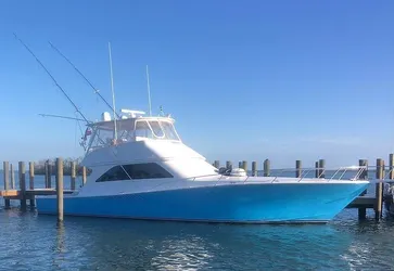The Viking 56 Convertible had some big shoes to fill when she replaced the highly popular 55 Convertible in Viking's fleet late in 2003. Longer and wider than her predecessor, the 56 has propeller pockets to reduce draft along with numerous equipment and mechanical upgrades. An impressive yacht with powerful lines, the lavish Three-Stateroom interior of the Viking 56 is an appealing blend of high-gloss teak joinery, designer fabrics and luxury-class furnishings. The Galley and dinette are forward in the Salon that boasts an electric entryway door, full entertainment center and ultra-leather sofa. Granite counters and under-counter Sub-Zero refrigeration are standard in the Galley. Note the Companionway laundry center. The amidship Master Stateroom includes walkaround queen bed, flat-screen TV and a wall of hanging lockers. The forward VIP Stateroom includes a queen bed to port and an upper single berth to starboard and private Head access. The starboard Guest Stateroom includes upper / lower cross-over bunks and private access to the Guest Head. On Deck, the vast 157 square foot Cockpit of the Viking 56 includes a large in-deck fish box, in-deck live well, refrigerated step box, tackle center and transom door with lift gate.