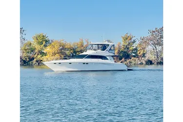 Freshwater / Great Lakes boat since new this vessel features Optional Twin Caterpillar 3196 TA 660-hp Diesel Engine's with only 1279 original hours. Notable features include but are not limited to the following: Air-Conditioning & Heat (4-Units; Including Bridge AC/Heat), (2) Head's (Vacuflush) w/Vanity/Sink/Stall-Shower's, Central Vacuum System, Washer / Dryer, Westerbeke Generator, Bow Thruster, Windlass Anchor w/Forward Pedal Controls & Freshwater Washdown, Complete Electronics Package (VHF Marine Radio, Tri-Data w/Depth/Speed/Water-Temp, Radar w/GPS/Chartplotter, Autopilot - Note NEW Garmin Electronics Tastefully Installed), Full Bridge Enclosure, Hydraulic Swim-Platform, Custom Canvas w/Aft-Deck Sun-Shade, and MUCH more!