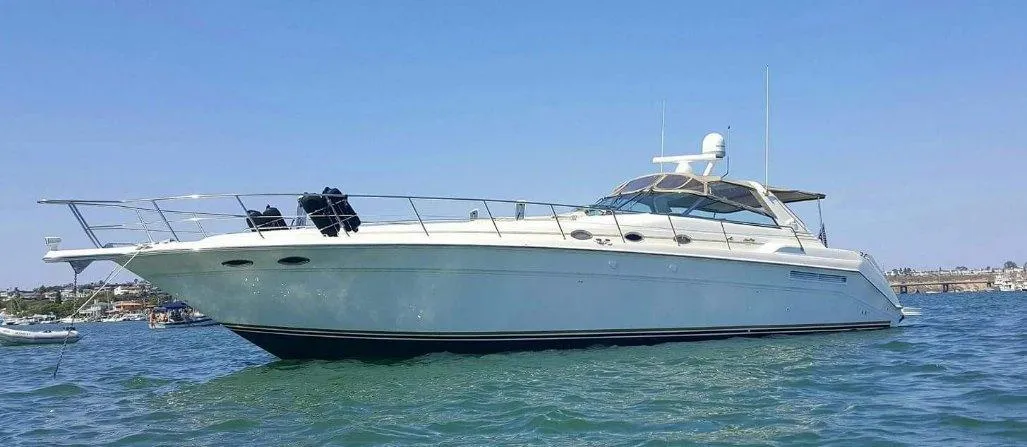 The Sea Ray 500 Sundancer was one of the largest sports cruisers built in the 1990’s. With her long foredeck and sleek profile, the 500 combined luxury and extravagance seldom found in a yacht of her size adn vintage. Her sheer size is impressive enough, but it’s the expansive, high-style interior that catches the breath of first-time viewers. Her interior is laid out on a single level with curved bulkheads and designer furnishings that rival yachts much larger in size.