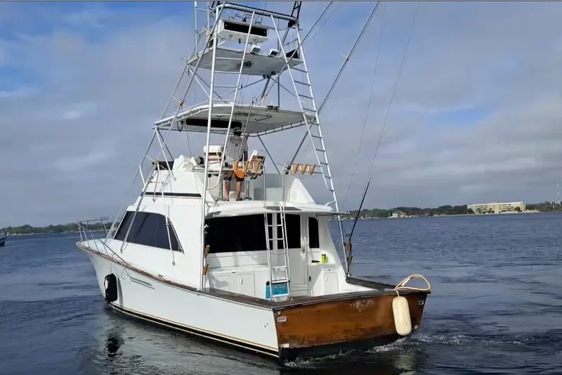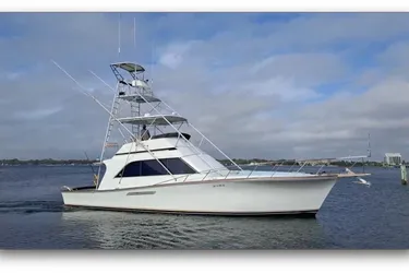 This Sport Fisher is the roomy and popular three stateroom, two full head version by Ocean Yachts. Powered by Twin Detroit Diesel 6-71’s and a Westerbeke 12.5kw generator she is nicely provisioned with AC/reverse cycle heat, full galley, fish and tackle center, large freezer, live well, teak cockpit, coaming pads, hardtop with electronics, tuna tower with controls and auto-pilot, outriggers, wide transom door and lower cockpit controls.