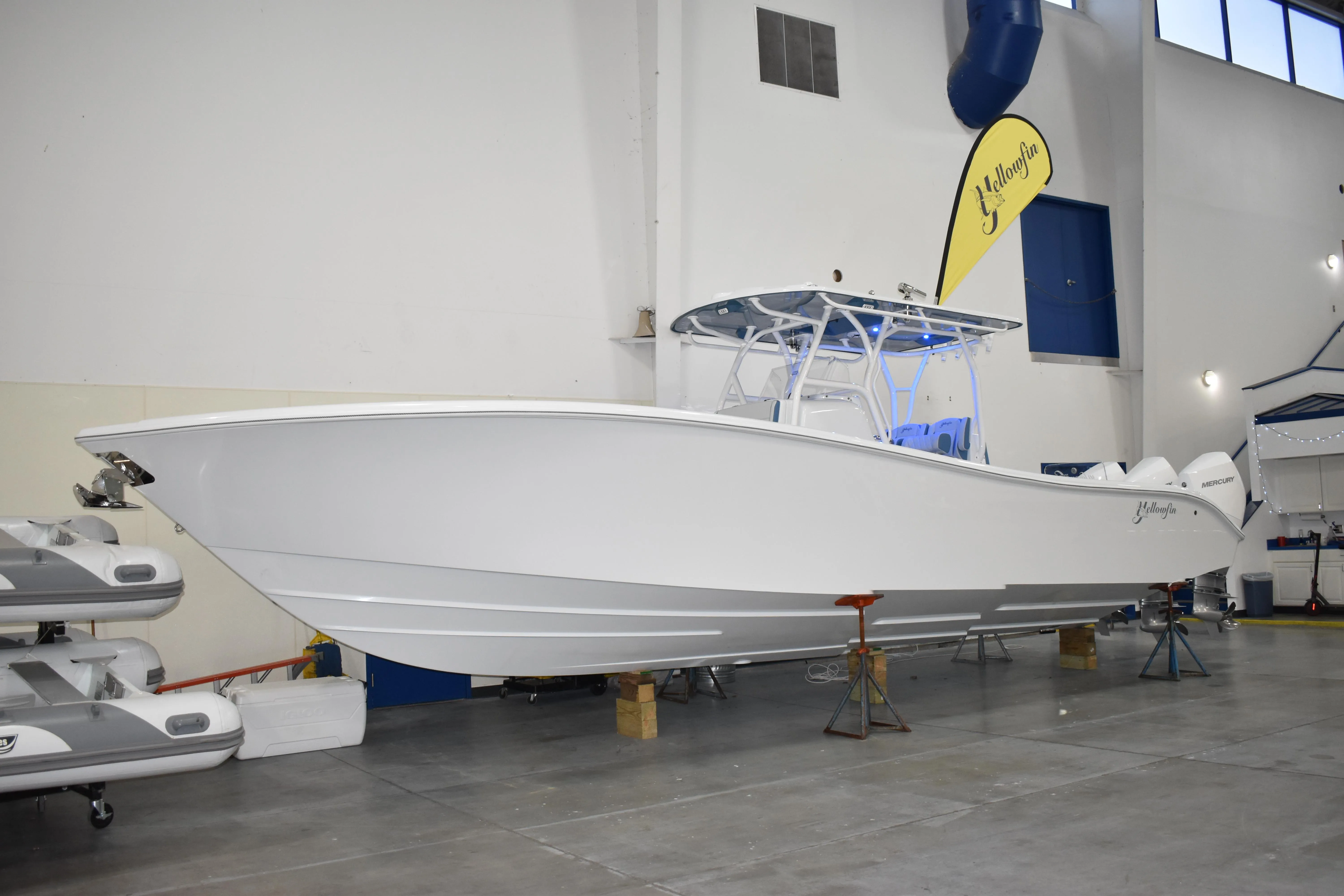 Brand New at this low price. This mid-sized Yellowfin gives you unsurpassed flexibility with outstanding fishing features and respectable comfort in a custom offshore center console. Features include Triple 300HP V-8 White Mercury outboards, Two-tone Powder Coated Hardtop, custom Yellowfin Helm Seats, Custom Forward Seating. Equipped with Gemlux Outriggers, Garmin GPS/Fish Finder/Plotter, Sea Land Head w/Holding, Anchor Windlass, Fusion Stereo System w/ 2 JL Amps and 6 JL Speakers. Matahorn White hull color, includes a custom AmeraTrail Aluminum Tri-Axle Bunk Trailer.