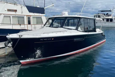 Designed in a modern Carolina Downeast style, the MJM 3 is a luxury performance, all-weather, dual console day-yacht. The MJM 3 includes the protection of an indoor/outdoor pilothouse, the most usable space in class, and delivers the swift, soft ride of an advanced Doug Zurn hull design. The digital fly-by-wire technology of the MJM 3’s twin Mercury Verados delivers quiet running with joystick piloting, Skyhook station keeping, low maintenance costs, easy pre-flight checks, and all the fun of shallow water capability.