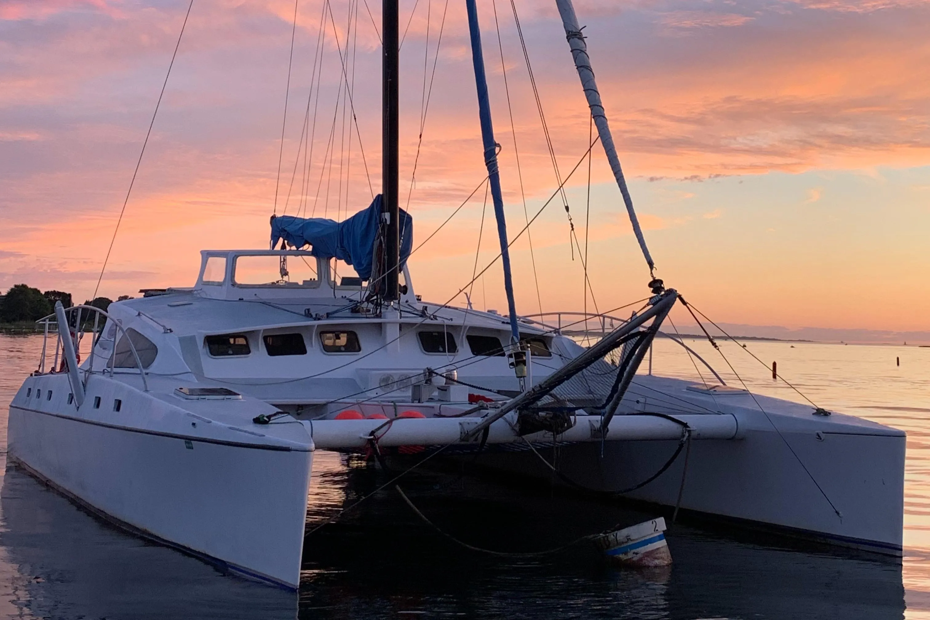 This Crowther Custom 46 Catamaran should be a top choice for those seeking a blend of performance, comfort, and durability. Known for their sleek design and long, stable hulls, Lock Crowther's design offers exceptional stability without sacrificing adaptability, making for an excellent platform for any sailor. The spacious interior ensures comfort during extended trips, while the solid construction provides reliability in all conditions. With a rotating mast for precise handling, twin outboard engines for simple and consistent power, and impressive speed potential, the Crowther 46 delivers both luxury and performance on the water. Constantly upgraded and professionally maintained, this boat has benefited immensely from her current owner. New sails, engines, electronics, standing rigging, not to mention the significant upgrades to the interior and creature comforts, the list goes on and on. Whether you are veteran sailor looking for a sporty daysailer/weekender, a young couple getting into the cruising world, or an individual looking for a potential charter business opportunity, Ocean Zen has it all.