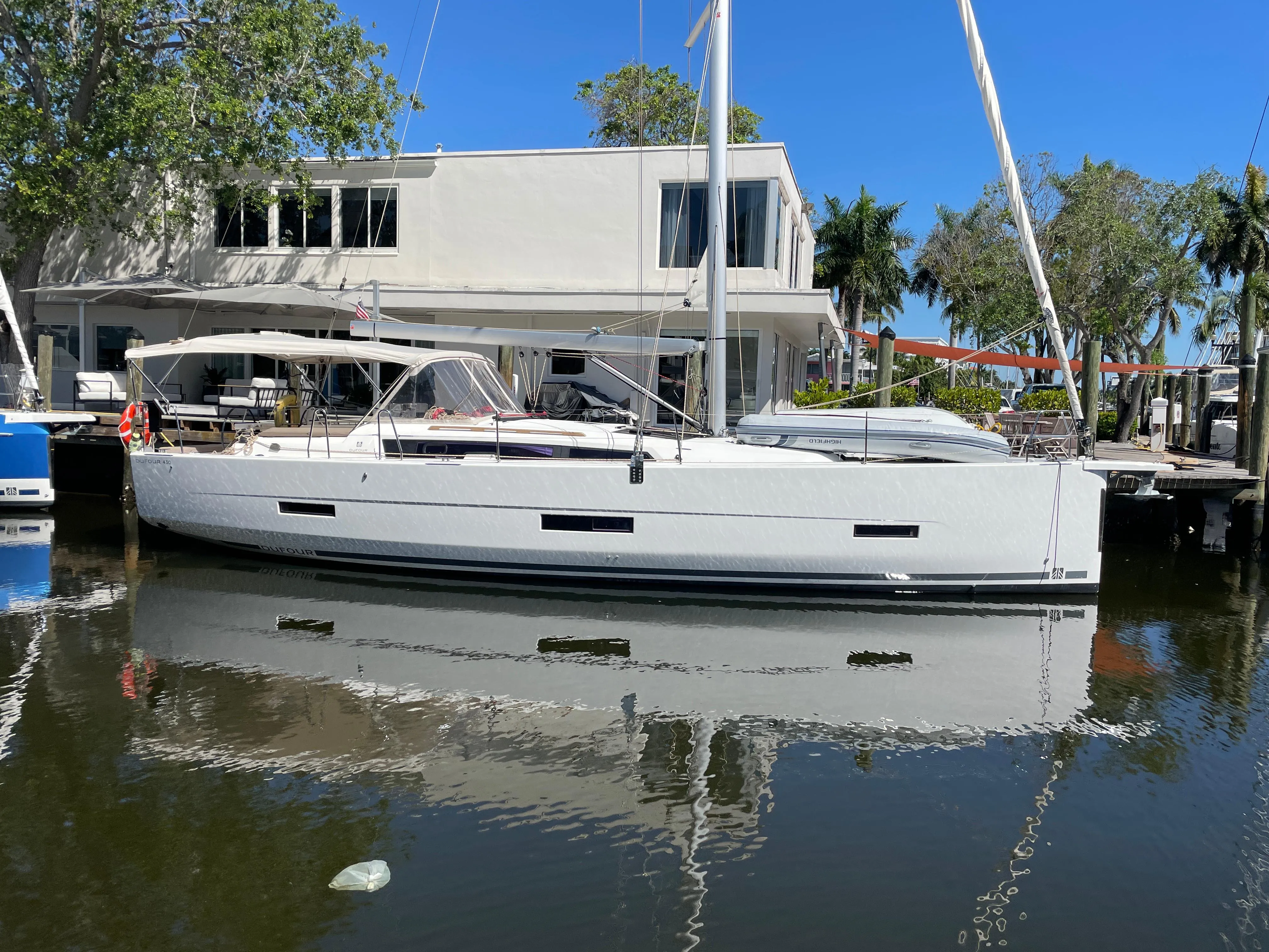 "Ollie" a 2022 Dufour 430 as a 3 cabin 2 head layout plus a pullman bunk room making this a wonderful sailing vessel for families or those who sail with friends. We can even convert the pullman cabin to a utility room if you like. The Dufour 430 is ICW friendly, stunning blend of performance and comfort, designed for sailors who demand the best. This yacht features a sleek hull design and a spacious cockpit, perfect for cruising in style. The interior is thoughtfully designed, with ample natural light and high-quality finishes throughout.