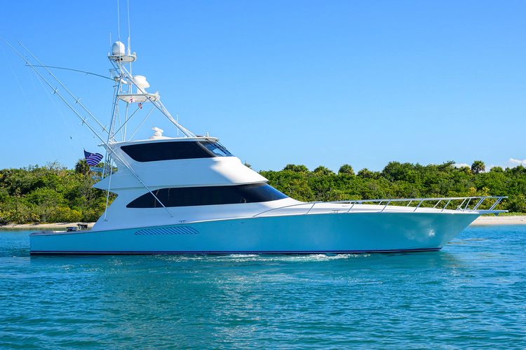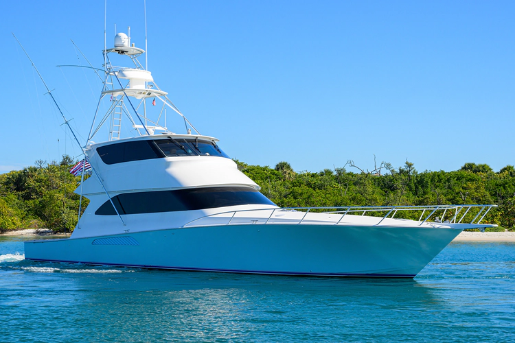 The 74’ Viking was the Flag Ship of the Viking line for many years, its reputation as a high quality, safe , stable and high performance platform was legendary, to this day the 74’ Viking still enjoys a solid reputation so much so that Viking has reintroduced the 74’ to its new line of boats. Over the past twelve months ON ICE has received a major refit and updating, form its new bottom job to the custom deluxe hand laid individual teak boards in the cockpit to new wall coverings and headliner to detailed attention to the mechanical items on board. Striking in appearance ON ice turns heads wherever she goes, this is the opportunity to own a great family cruising boat or a downright serious fishing machine.