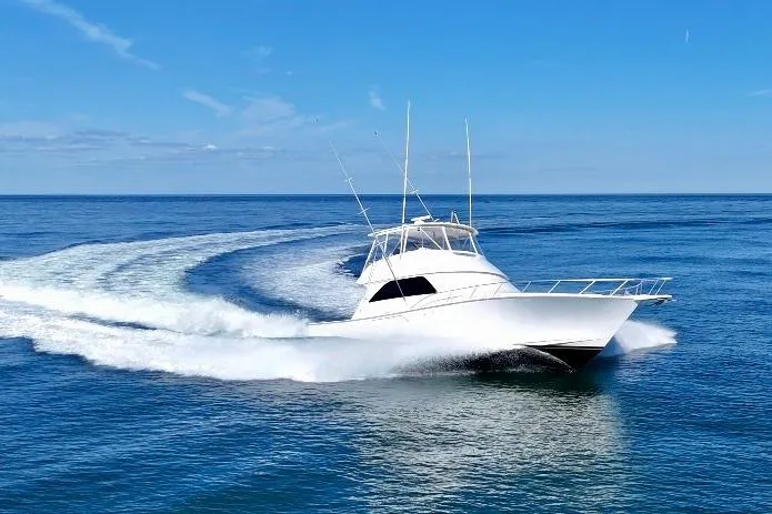 On The Ball is a 3 stateroom 2 head 2006 56 Viking. This single owner boat has been meticulous maintained and was built not only with a full queen Master berth but a full queen VIP berth as well. The forward VIP birth shares a bathroom with a full upper lower bunk room. Its 1360 Man Common Rail engines give her a cruise of 28 knots and are extremely economical. With the Main fuel tank holding 975 gallons and a forward fuel tank holding 500 gallons range is not an issue. You can comfortable fish the Northeast Canyons for Tuna or make runs to the Bahamas and fish any island you choose.
