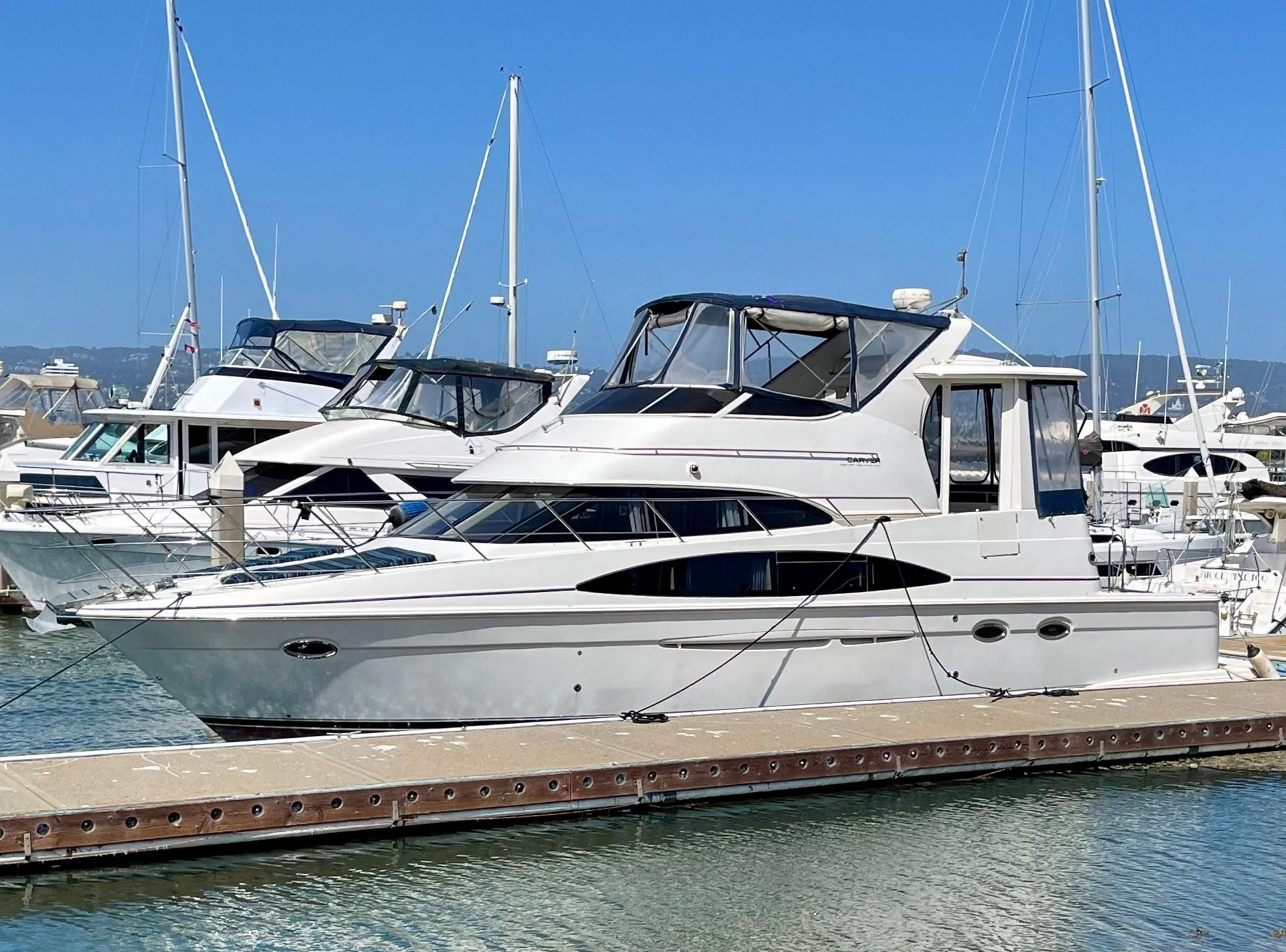 The popular stretch salon version features a long, wide social / dining / galley area with windows on three sides. The big, private aft cabin is accessed from the salon and from the big outside social deck. The private guest cabin forward also joins the main salon. The master cabin and the guest cabin have private heads with showers. The split-level exterior has a flybridge command-control, A mid level social deck and a big aft platform which is excellent for fishing, swimming, docking. At the bow is a big sun-bathing / lounge area. Overall, a wonderful layout for live aboard, coastal exploring.