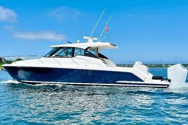 The sleek styling of the 43 LS is best complemented by power and performance. Yamaha power combined with glass cockpit integrated electronics including Garmin marine navigation systems provide comfort and control at the helm. Optional helm master joystick steering offers an additional level of command at the dock or underway. A fuel capacity of 400 gallons combined with a top speed over 50 mph gets you to your favorite port of call fast, giving you more time to enjoy with family and friends.