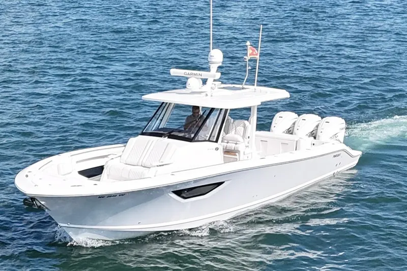 Features Triple Yamaha 425-hp Motors (Note Joy-Stick Piloting) with 72 original hours. Notable features include but are not limited to the following: Air-Conditioning & Heat (2-Units; Note Cockpit AC/Heat), Head (Vacuflush) w/Vanity/Sink/Shower, Windlass Anchor w/Polished Stainless-Steel Anchor, LewMar Bow-Thruster, Fischer Panda Generator, Full Garmin NAV w/(2) 16" MFD Display's w/Radar/GPS/Chartplotter, Autopilot, Premium Sound System w/Bluetooth, DirecTV Satellite TV, Starboard Dive Door, Retractable Sunshade, Cockpit Refrigerator, Cockpit Electric BBQ-Grill, Transom Live Well, Power Slide Mezanine, Full Console Enclosure w/ Gull Wings (Polycarbonate), Stamoid Cover Package, and MUCH more!