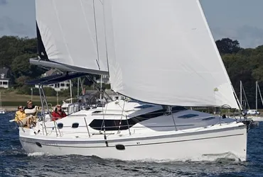 The hull is solidly constructed and shaped for lively performance and a smooth ride, even in rough sea conditions. On deck, dual helm stations deliver the ultimate in comfort, control and visibility for the captain. Hunter’s stainless steel Traveler Arch, B & R rig and a unique double-ended mainsheet system provide the crew with effortless sail handling. The large, T-shaped cockpit is well equipped to provide shelter at sea and sociable lounging at anchor.