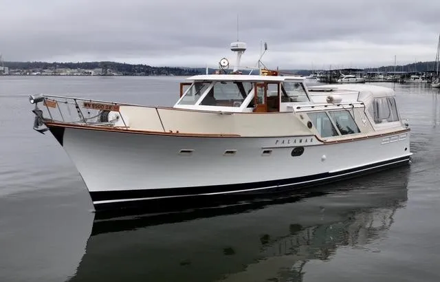 This beautiful boathouse kept classic was built by Philbrooks shipyard in B.C.Designed by William Garden and constructed of epoxy coated double planked mahogany epoxied between layers and an ironwood keel. Her proud heritage is reflected in the plans that are at Mystic Seaport Connecticut.