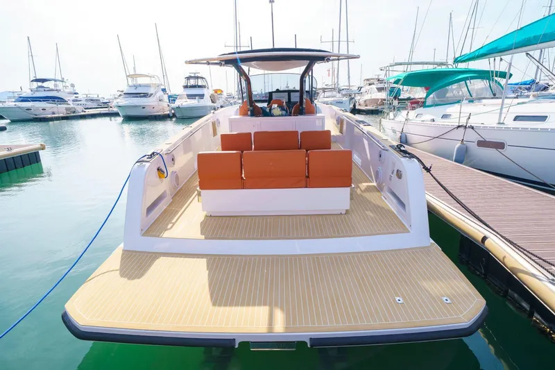 The Pardo 38 is a perfect blend of design and functionality, standing out as the ‘smallest’ in the Walkaround range while proudly showcasing the distinctive traits of Pardo’s identity. From its iconic inverted bow to its sleek, clean lines, the Pardo 38 is instantly recognizable on the water. Designed for day trips with family and friends, this yacht is safe, easy to maneuver, and delivers an exhilarating performance to owners who enjoy a dynamic, sporty experience. With its striking style and agile, high-speed character, the Pardo 38 also serves as a luxurious tender for larger yachts. Each Pardo 38 is a masterpiece of Italian craftsmanship, seamlessly balancing modern innovation with timeless elegance. Its generous, versatile layout is designed to adapt to the owner’s unique preferences, creating truly one-of-a-kind results.