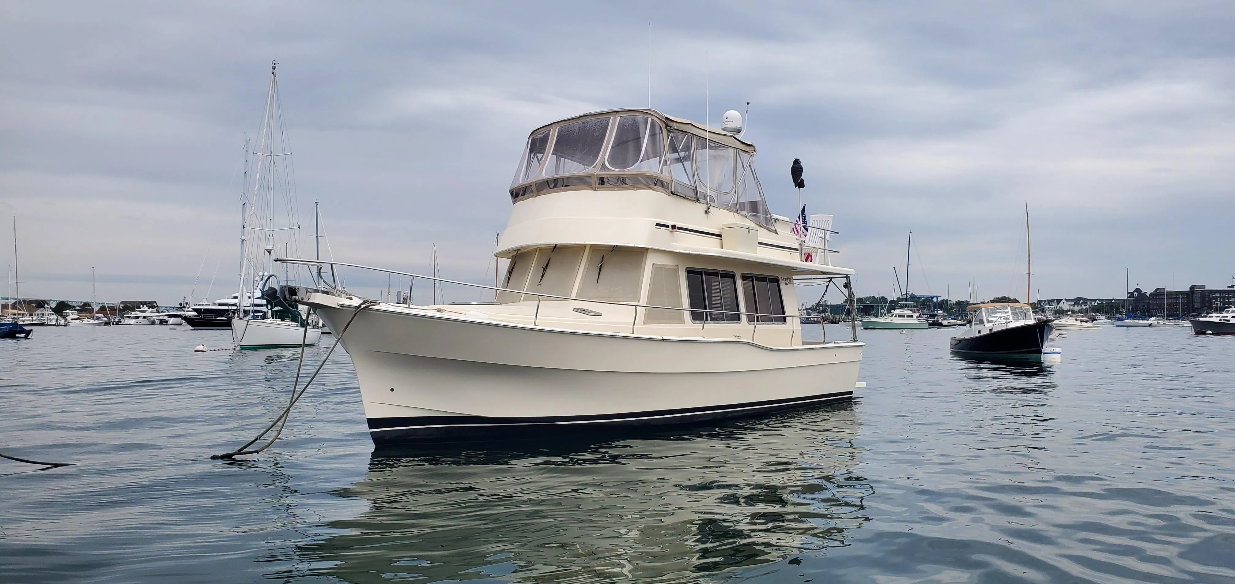 Pathfinder is a 2004 Mainship 400 Trawler that has been loved and cared for by her original owner since 2004. She has spent her life in Newport Harbor on her mooring, enjoying numerous cruises throughout Narragansett Bay, trips out to Block Island, and even a memorable passage down the ICW to Sarasota, FL, island hopping around the Bahamas, and back to Rhode Island.