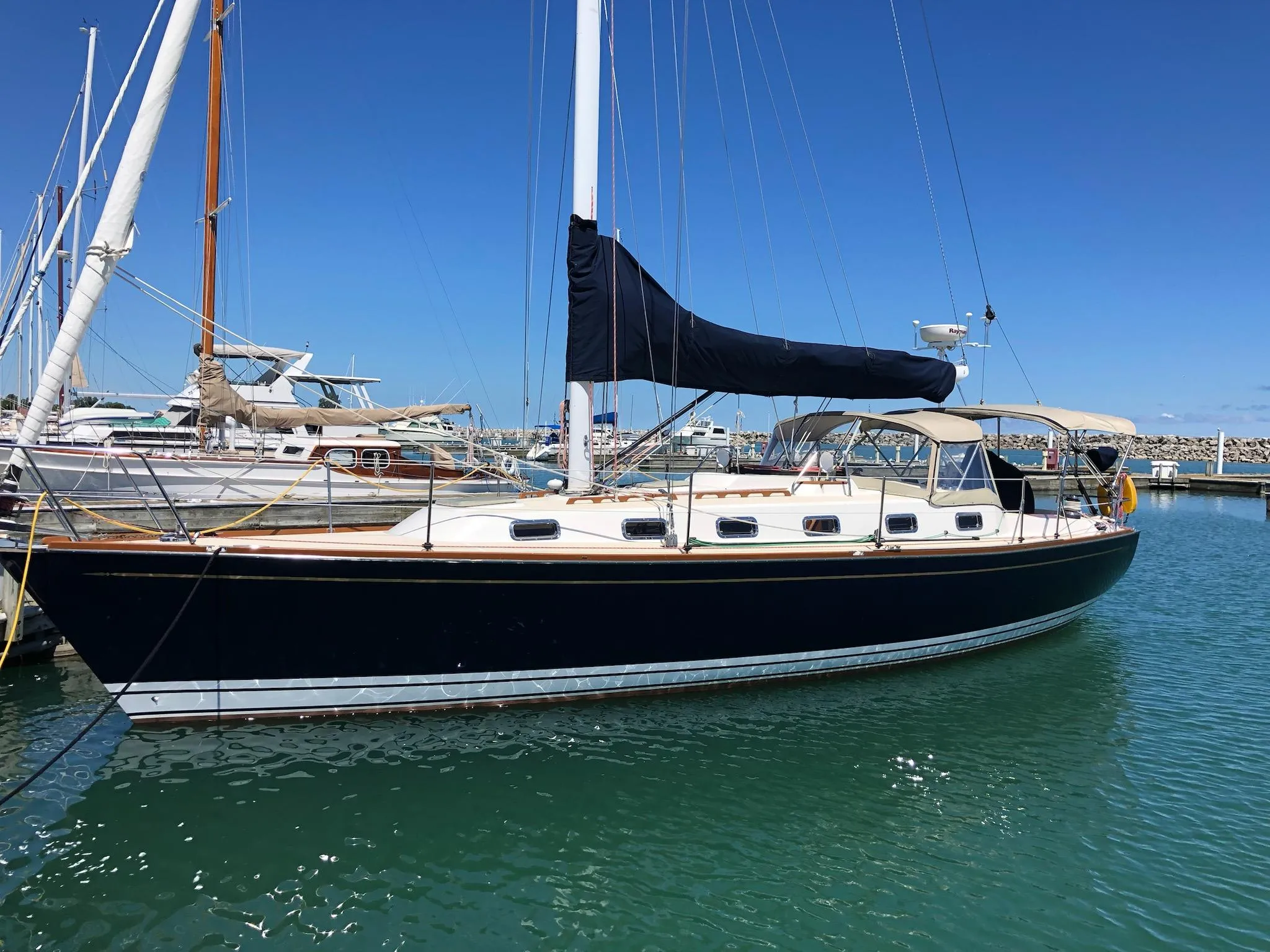 The Tartan 4100 is a high-end cruising yacht, offering graceful lines, moderate draft and a functional sail plan and deck layout. She is a quality built yacht that is safe, fast, and designed to sail under a full range of wind and sea conditions. Note: This is a 3rd owner boat always sailed on the cold, clean, freshwaters of the Great Lakes, and stored inside heated for 8 out of 12 months of the year, until its purchase in 2022 when it was sailed from the Great Lakes to Florida.